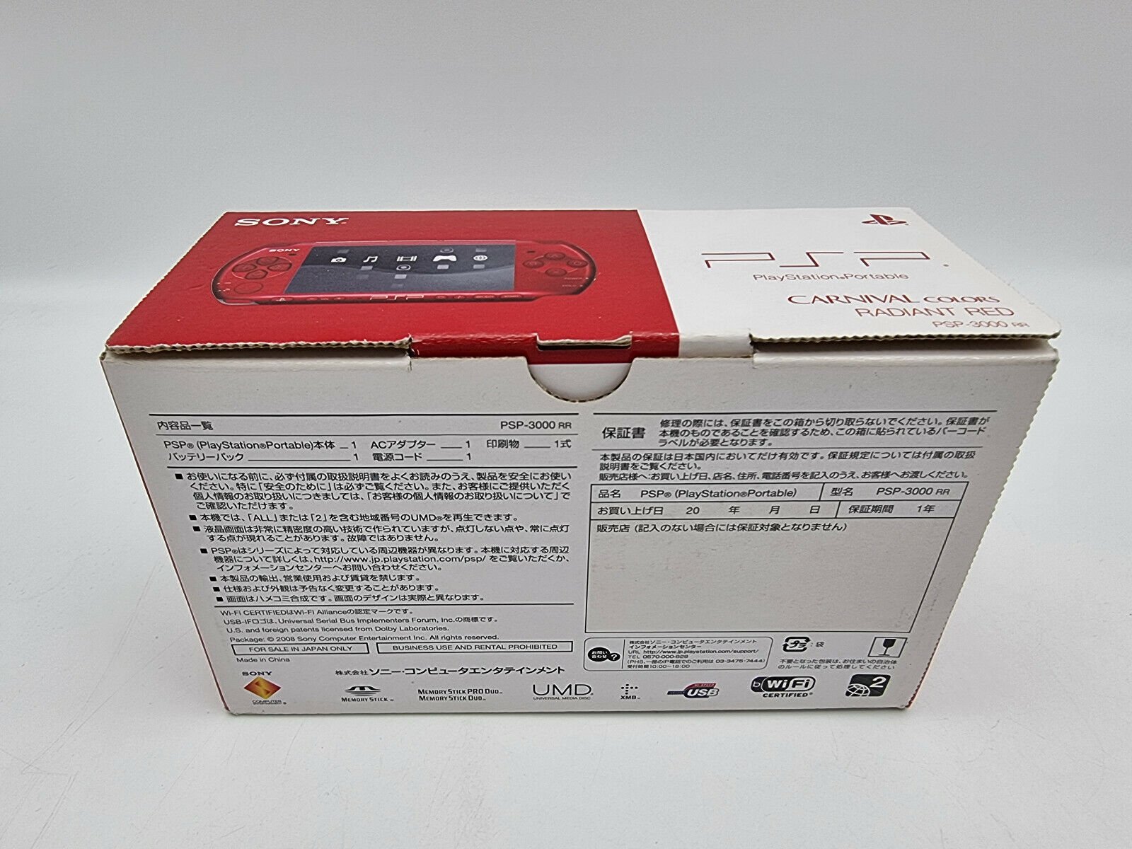 CONSOLE PSP RADIANT RED PSP-3000 BOX NO BATTERY TESTED JAPAN