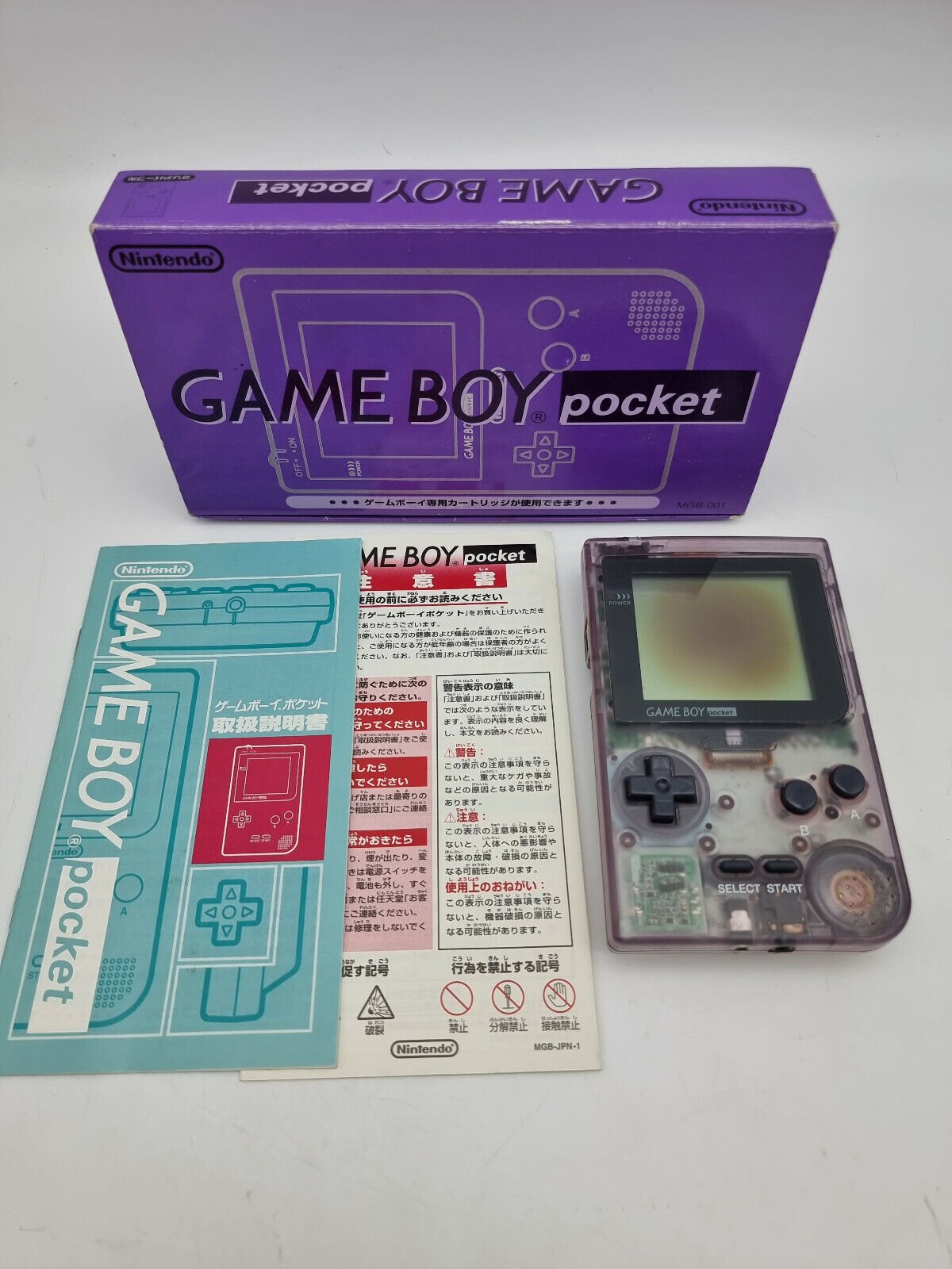 CONSOLE GAME BOY POCKET CLEAR PURPLE BOX TESTED JAPAN USED TESTED