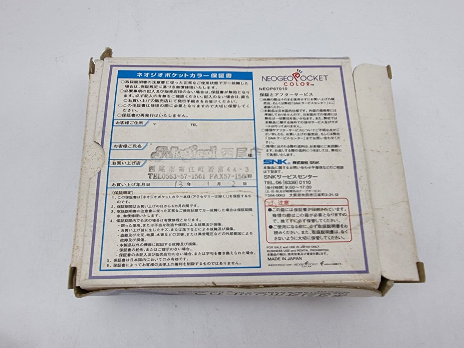 NEO GEO POCKET CONSOLE PEARL BLUE BOX JAPAN USED